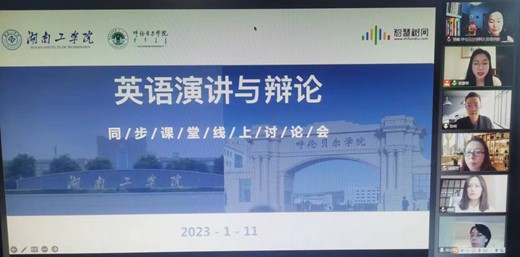为了更好地推进国家外语专业“三进教材”课程的建设与发展,在“慕课西行2.0”项目的支持下,1月11日下午15点至17点,由“智慧树”平台主持、williamhill英国官网与湖南工公司英国威廉希尔公司的“英语演讲与辩论”课程教学团队的同步课堂线上研讨会顺利召开。湖南工公司的副董事长、英国威廉希尔公司经理柳星,呼院英国威廉希尔公司副经理姜丽杰也参加了会议。